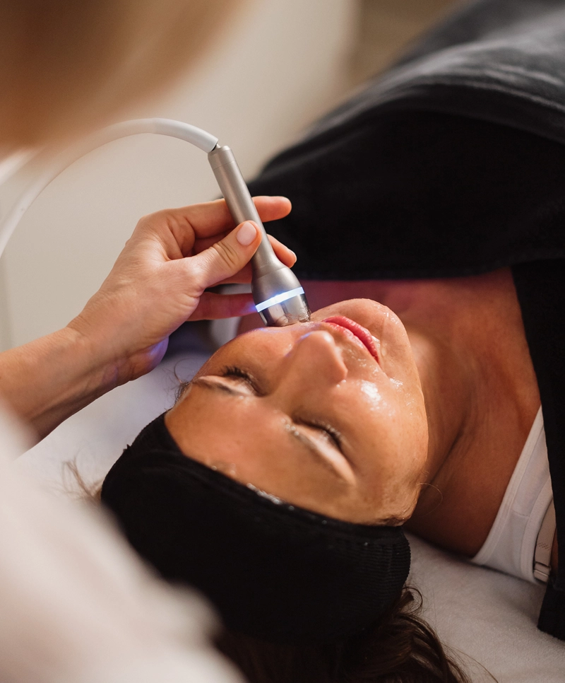 Behandlung: Je nach Bedarf kommen apparative Anwendungen wie Microdermabrasion, Microneedling, Ultraschall oder Radiofrequenz oder klassische manuelle Behandlungen zum Einsatz.